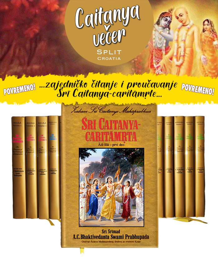 Sukladno trenutnim mogućnostima, Caitanya Večer ćemo održavati povremeno te ćemo vas obavijestiti uoči svake naredne večeri. Zahvaljujemo na razumijevanju.