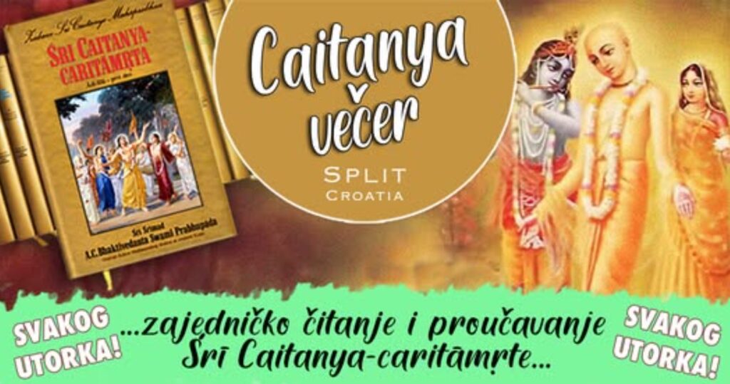 Sukladno trenutnim mogućnostima, Caitanya Večer  ćemo održavati povremeno te ćemo vas obavijestiti uoči svake naredne večeri.