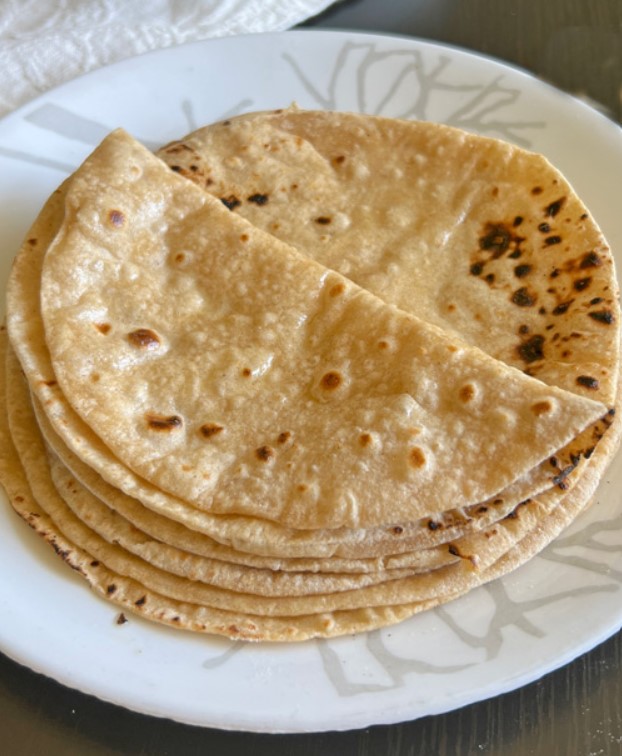 Zagrijte tavu na srednjoj vatri. Mokrim rukama ponovno premijesite tijesto i oblikujte kuglice iste veličine i pospite s malo brašna. Razvaljajte tanke pogačice od cca. 15 cm na pobrašnjenoj dasci. Sada stavite chapati na prethodno zagrijanu tavu dok se ne pojave mali mjehurići i dok se rubovi malo ne izboče. Okrenite chapati i isto tako lagano pržite. Podignite chapati hvataljkama i držite obje strane iznad otvorenog plamena nekoliko sekundi dok se ne napuhne poput balona. Gotov chapati trebao bi biti kuhan (bez mokrih mrlja) i prekriven smeđim mrljama s obje strane. Istisnite zrak i premažite jednu stranu maslacem (alternativno: biljnim margarinom ili kokosovim uljem).